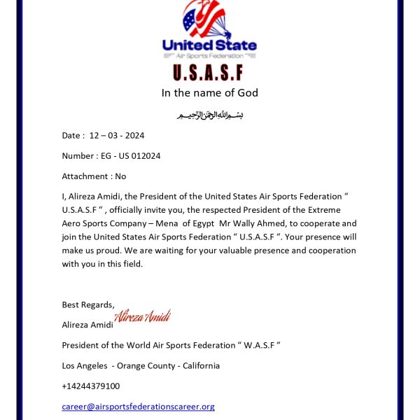 We confirm that the U.S. and World Federations, as the New Legal Air Sports Federations, are the New Era of Air Sports Organizations in the USA and the World.